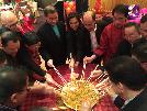 (紐約.明報31日訊)華人在春節期間,除了吃年夜飯、貼春聯、參加遊行活動外,還會去寺廟搶頭香,祈求一年的平安順利。頭香,即農曆新年的第一支香,有格外的好意頭,人們往往會去各大寺廟爭搶這第一的位置。