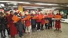 (紐約.羊展恬21日報導)近20位來自台灣會館亞細亞合唱團團員在台灣會館理事長陳春蘭(右一)的帶領下,昨日傍晚前往法拉盛緬街的7號地車車站「報佳音」,優美的合聲演唱平安夜、普世歡騰、天使歌唱在高天、恭祝你們聖誕快樂等歌曲,讓來往車站的民眾都不知不覺停下腳步聆聽聖歌。