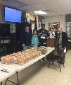 (紐約.羊展恬27日報導)曾在今年8月向109分局捐款一萬美元的華裔婦產科醫師鄭岱雲(右一)和太太吳美如(左二),日前再次向109分局維護社區治安表示感謝。鄭岱雲夫婦在感恩節前一天,向警局送上一批美味餐點,讓在年終假期辛苦工作的警員可以享用,受到109分局局長哈里森(右三)及109分局社區事務組警探歐唐納(左一)等警員的熱烈歡迎。