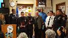 (紐約.羊展恬10日報導)市警109分局9日晚在分局內舉行例行警民會議,109分局局長哈里森在會議上,向在10月份轄區內優秀警員頒授「本月最佳警員」稱號,並向逮捕假警察、解救自殺者及逮捕多名偷竊信件及身份盜竊的反犯罪小組一名警佐和4名警員授予「本月最佳警員」,包括Mattew McGovern 、Richard Harris、Brandon Mui、JoVanna Rodriguez、Joseph Repalone(圖)。