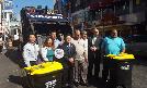 (紐約.羊展恬14日報導)針對法拉盛「餐廳街」40路的衛生問題,市議員顧雅明昨日聯同市清潔局、法拉盛商改區、皇冠運輸公司(Crown Container Company)及多位社區領袖共同宣佈新措施(如圖TY0914a1),將自12日起由皇冠運輸公司將向40路的商戶免費發放150個大型垃圾收集膠筒,每個收集箱約可容納45加侖垃圾。