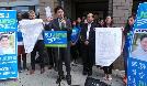 (紐約.羊展恬30日報導)競選紐約州第16選區民主黨州參議員的韓裔鄭勝振,繼日前舉行記者會指稱對手現任州參議員史塔文斯基聯署簽名不合格後,昨日又再度率領志願者在皇后區選舉局前舉行記者會(圖,鄭勝振競選辦公室提供),再度抨擊史塔文斯基不合格的聯署簽名的情況,呼籲群眾在選舉期間保持公正公平的審查制度來評審。