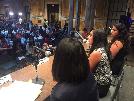 (紐約.留天佑1日報導)聯邦最高法院日前攔下總統奧巴馬的「擴大版」暫緩遞解行政令,逾500萬無證移民夢碎。紐約市作為全美移民最集中的城市之一,多個團體昨日在市立圖書館中央分館舉行移民論壇(圖),請來市府官員列席,多家主流媒體也予以直播。