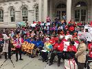 (紐約.留天佑25日報導)市議會老人事務委員會主席陳倩雯,昨日聯同多個老人福利團體在市府前集會(圖),要求市府向老人局增撥資源,改善安老服務及縮短老人公寓輪候時間。團體代表指,政府應在預算案中,對老人福利提供公平的份額,並透過老人局,增撥3450萬元,提升紐市的安老服務。