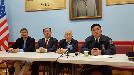 (紐約.羊展恬4日報導)針對今年2月南台灣發生6.4級地震,造成台南地區重大災情,紐約中華總商會昨日舉行記者會,宣佈韓裔企業集團漢亞龍超市(Hmart)總裁權布萊恩(Brian Kwon)昨日代表該公司將籌集的善款6133.16美元,捐贈給駐紐約台北經文處轉交災區,用於救濟及災區重建之用,由紐約華僑文教中心主任王映陽代表經文處接受捐款。