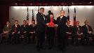 (紐約.留天佑2日報導)美東聯成公所昨日舉行新屆主席及職員就職典禮。交接儀式由駐紐約台北經濟文化辦事處處長徐儷文大使主持。主席鄧學源,在聯成公所屬下僑團首長及外埠僑界代表數百人見證下就任,場面莊嚴隆重。