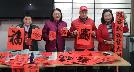 (紐約14日訊)為慶祝農曆春節的來臨,紐約地區多位書法家及藝術家近日來在社區舉辦多場免費贈送春聯活動。書法家周唐軒(右二)12日聯同藝術家兆鍾芬(左一)等人在法拉盛台灣會館書寫春聯及吉祥話,贈送给社區民眾,受到熱烈歡迎。周唐軒也特別書寫「招財進寶」、「春」、「福」等春帖,讓民眾帶回家討個吉利。