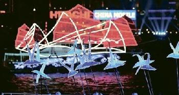 在首幕有關香港歷史的水上巡遊中,會有百多隻海鷗出現,是由真人控制其翱翔姿態。(圖:香港明報)