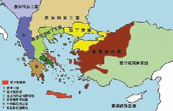 1205年前後的拜占廷帝國(尼西亞帝國)疆域。