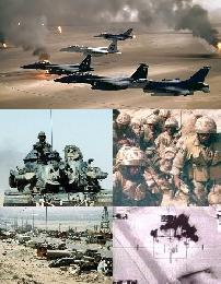 1990年8月2日,伊拉克軍隊入侵科威特,並宣佈併吞科威特,波斯灣戰爭爆發。以美國為首的多國部隊在取得聯合國授權後,於1991年1月16日開始對科威特和伊拉克境內的伊拉克軍隊發動軍事進攻。戰爭一直持續至1991年2月28日;伊拉克最終接受聯合國660號決議,從科威特撤軍。此次戰爭是美軍自越南戰爭後主導參加的第一場大規模局部戰爭。通過波斯灣戰爭,美國進一步加強了與波斯灣地區國家的軍事、政治合作,強化了美軍在當地的軍事存在,同時為2003年的伊拉克戰爭打下了伏筆。(資料來源:維基百科)