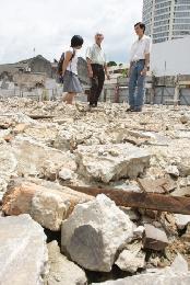 (攝於2008年6月)看著早已成廢墟的春滿園,回憶起當時的風光不免唏噓。右2是杜忠全,中是謝清祥。(圖:馬來西亞星洲日報)