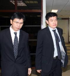 林慶泰(38歲,右)在律師的陪同下,進入法庭面控。(圖:馬新社)