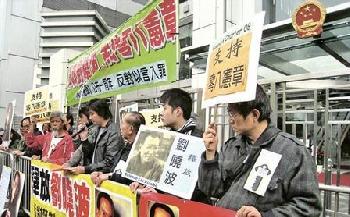 另外,中國維權律師關注組、香港支聯會等週二遊行至中聯辦抗議中國政府以言入罪,要求中國政府遵守憲法,落實國際人權公約賦予人民享有言論自由的權利,並立即釋放劉曉波及其他維權人士。他們又指出,劉曉波去年12月以涉嫌“煽動顛覆國家政權罪”被帶走,今年6月被正式逮捕,並於11月底再被延長拘押2個月,已是劉曉波第3次被延長拘押,對於中國政府一再延長對劉曉波的羈押期限,表示強烈抗議。(香港明報)
