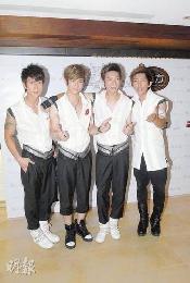 飛輪海4子大受歡迎,8月20日出席慶功宴時更被兩女拉著不放。(圖:香港明報)