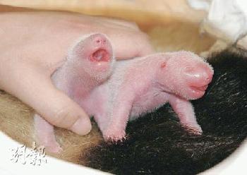 初出生的熊貓沒有黑白毛色,約到第十天起長毛,一個月才長出大家熟悉的黑白毛色。熊貓基地內不停播放關於熊貓紀錄片,講述它們由懷孕到生小孩的故事。(資料圖片)(圖:香港明報)