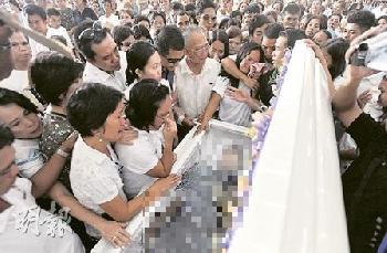 (菲律賓)上週一殺害8名香港旅客的菲律賓鎗手門多薩,週六(8月28日)在家鄉下葬,逾500名親友出席喪禮。有親友表示,雖然不認同門多薩殘殺人質,但認為他非完全做錯,門多薩兒子則再次哀求各方寬恕父親。
