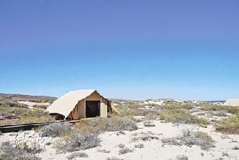 國家公園也不止用看的,Cape Range國家公園裡便設有豪華酒店Sal Salis Ningaloo Reef,它號稱為Wild Bush Luxury Lodges,翻譯過來就是野外豪華小屋,它所謂的豪華,並不是一般定義下的豪華(收費倒是不便宜)。抵達酒店時,四野無物,眼前只有湛藍海水、泥黃陸地和笑意盈盈的服務員。我們滿腦子打出問號:酒店呢,澳洲帥哥解畫說:“酒店在800米以外,這裡風景優美,我們希望客人能步入酒店,完全融入自然美景中。”
