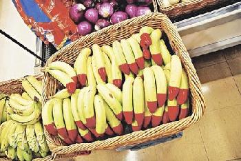 紅尾巴的香蕉為有機香蕉,紅色標記清楚易認。(圖:香港明報)
