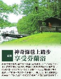 森林裡樹木奇高,大概下過雨,綠葉看來分外翠綠,也因為空氣清新,人工污染近乎零,地衣與苔蘚分外茂盛;可以攀附的表面,幾乎都是它們,地上鋪出不同層次的綠色。雙腳走在軟軟厚厚的地衣與青苔上,感到舒服,更感覺神奇。這幅廣闊的天然地毯,又樸實又華麗,它把奢侈與樸素融為一家,多麼像芬蘭的設計。