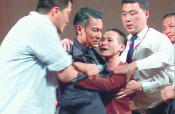 由於不知此粉絲有何意圖,在拉撞之間,華仔幾乎被拖致跌倒,情況緊張。華仔也被這突如其來之舉動嚇得有點呆了一呆,不過,當保安終把這位糾纏不放的影迷拉開後,華仔已第一時間追上前,多次叮囑保安別粗暴對待這位粉絲,他確保對方也安全後,才照常繼續首映活動。大家都大讚華仔表現鎮定,明明自己都嚇著,但也記掛粉絲安全。