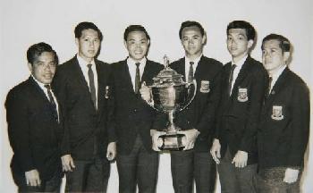 1967年大馬湯杯英雄,左起:伍文美、尤清河、陳貽權、黃紹銘、陳奕芳及鄭求山。(圖:馬來西亞星洲日報)