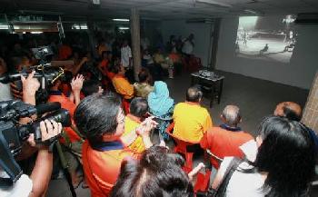 湯杯老將齊聚在酒店大廳,一同觀賞1967年捧杯的經典比賽畫面。(圖:馬來西亞光明日報)