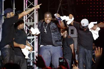 至於在晚上10時35分才登場的弗洛利達(Flo Rida),頸上戴的超大金牌項鍊異常搶眼,也比辛京斯頓的白色十字架更“俗氣”,雖然他也像辛京斯頓一樣上演在毛巾簽名然後拋下台的戲碼,但比辛京斯頓年長11歲的他,卻很快就再“加碼”。
