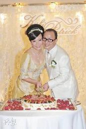 婚宴前,一對新人見記者拍照,兩人表現含蓄,新郎輕吻娥姐。減肥25磅的娥姐穿著香檳色低胸晚裝,佩戴珍珠鑽石頸鏈、耳環、手鏈及天鵝造形求婚戒指。娥姐說:“丈夫送了兩套首飾作結婚禮物,包括我戴著的,還有一隻鑽石手表,我沒有戴。”她介紹天鵝戒指是求婚戒,由Patrick親自設計,但不透露價值,“一切也不及丈夫對我的愛惜”。