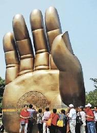 天下第一掌為靈山大佛右手的複製品,由於「佛手」與「福壽」同音,因此遊人到來都要摸摸。(圖:香港明報)