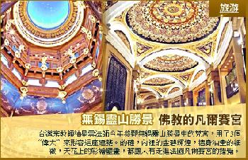 台灣宗教領袖星雲法師今年參觀無錫靈山勝景中的梵宮,用了3個“偉大”來形容這座建築。的確,內裡的金碧輝煌,牆身油畫的細緻,天花上的彩繪壁畫,都讓人有走進法國凡爾賽宮的錯覺。梵宮融合多種建築風格,在內地寺廟中可謂少見。加上週邊的九龍灌浴、靈山大佛等景點,靈山勝景可說是內地大規模的佛教文化建築群。