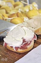 一般芝士廠設門市部,以新鮮的水牛奶芝士和火腿做三文治。(圖:香港明報)
