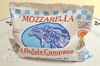 香港海風餐廳採用的Mozzarella di bufala Campana,每個200克,以鹽水浸著,獨立包裝。裝袋上有歐盟DOP(Denominazione di Origine Protetta)的核證印章。(圖:香港明報)