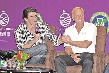 奧運八金得主菲比斯(左)與高爾夫球前世界冠軍Greg Norman(右)將同場較量球技。(圖:香港明報)