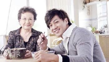 何潤東與母親以母子檔拍即食麵廣告。(圖:香港明報)