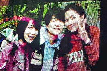 舞台熒幕播出由Hebe挑選的Selina舊照片,令人不勝唏噓。(左起)Hebe、Ella、Selina。(圖:香港明報)