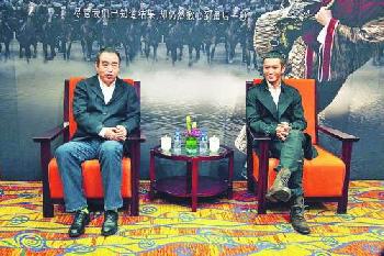 陳凱歌與黃曉明在北京出席《趙氏孤兒》記者會。(圖:香港明報)