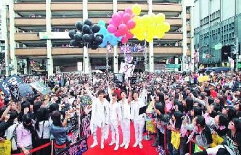 (台灣)LOLLIPOP F新專輯《四度空間》銷情理想,推出一週就登上“G-MUSIC風雲榜華語榜”冠軍位置。四子昨日舉行慶功簽唱會,獲得媽媽神秘現身打氣。敖犬當近千粉絲面前與媽媽嘴對嘴親吻,他開玩笑說:“在台下的爸爸會不會吃醋?”