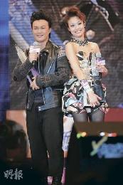 週六晚上率先頒四台聯頒的“卓越表現大獎”,金獎由“單飛”的阿Sa奪得、銀獎得主是G.E.M.、銅獎是陳柏宇。歌手的領獎衫各有特色,祖兒的低胸短裙,對比阿Sa的北極毛毛裙冷暖自知;“太太組”楊千嬅玩層層疊似裹蒸上身、謝安琪的裙也突顯了肥臂與肥髀。陳偉霆變身漢堡神探上台歌舞也增添歡樂氣氛。(香港明報)