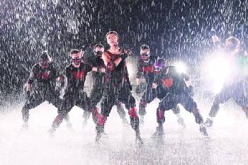 《尾巴》MV其中一幕在豪雨中勁舞,陳偉霆大叫辛苦。(圖:香港明報)