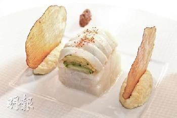 剛剛獲得米芝蓮兩星的Amber餐廳的大廚Richard Ekkebus說:“由於大部份鱈魚都不具可持續性,所以我只選用手釣的北歐鱈魚。”手釣是指由漁民用魚竿一條一條的釣上來,這方法的魚獲非常有限,既避免過度捕魚問題,又不會像用魚網般,把無辜的海產混獲(bycatch)一拼撈上來。至於其烹調法,較為刁鑽:以鹽醃鱈魚一整天后,才把魚柳放入攝氏100度熱水慢煮至肉質嫩滑;盡吸鹽味的腩肉,則混入薯蓉和橄欖油打勻而成“brandade”(即薯蓉球);再於鱈魚柳上放置青瓜皮和魷魚條構成的“意粉”,配上佐料和醬汁才完成。
