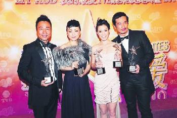 陳豪與佘詩曼12月3日晚奪得我的最愛電視男女主角獎,先勝黎耀祥、鄧萃雯一仗,且看5日晚的無線視帝視后誰屬。(圖:香港明報)