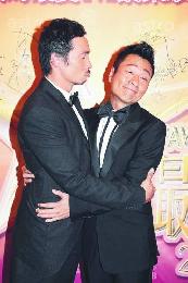 視帝熱門陳豪與祥仔搞笑擁抱還扮親吻。(圖:香港明報)