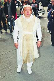 一身素服的梁家輝滿臉哀傷到場。(圖:香港明報)