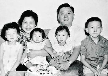 天林叔膝下有5名子女,當年拍這張全家福時,有王晶(右)及3名女兒,小女兒尚未出世。(資料圖片)(圖:香港明報)