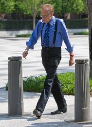 在熒幕上永遠是吊帶褲、大眼鏡招牌打扮的Larry King,主持風格以直率及有風度著稱。(圖:香港明報)