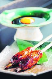 日式:火雞雞肉棒-免治火雞肉打至起膠,燒香後佐以加入蛋黃的醬汁食用。(圖:香港明報)