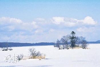 小島痕跡大沼冰面上小樹成群,其實是湖上的小島。 (圖:香港明報)