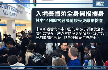 其中來自尼日利亞、也門、巴基斯坦、阿富汗和沙地阿拉伯等14個國家的旅客在登機前,將接受更嚴格的檢查。