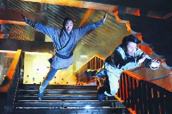 (香港)謝霆鋒與劉德華在電影《新少林寺》中,幾乎場場戲“近身肉搏”,其中一場大奸角霆鋒用腳踏著華仔胸口,兩人甚有默契,一Take過完成。霆鋒笑說:“面對華仔有壓力,很難落手,拍完都鬆一口氣。”