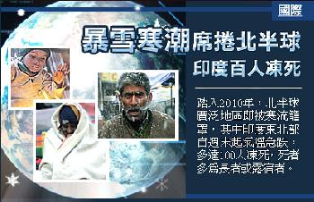 (印度)踏入2010年,北半球廣泛地區即被寒流籠罩,中國北京錄得60年來最大降雪,氣溫直逼40年來最低紀錄。韓國首爾亦錄得有紀錄以來最大暴雪。歐洲與北美多地同樣寒風凜冽。寒雪天氣導致交通癱瘓,民生大受影響。氣候關注組織警告,溫室氣體破壞大氣循環系統,極端天氣將繼續發生。